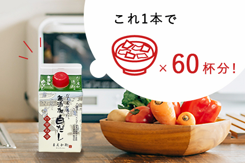 高濃度のため、小さじ1杯で味噌汁1杯分のだしが得られます(300ml製品で換算すると60杯分!)。